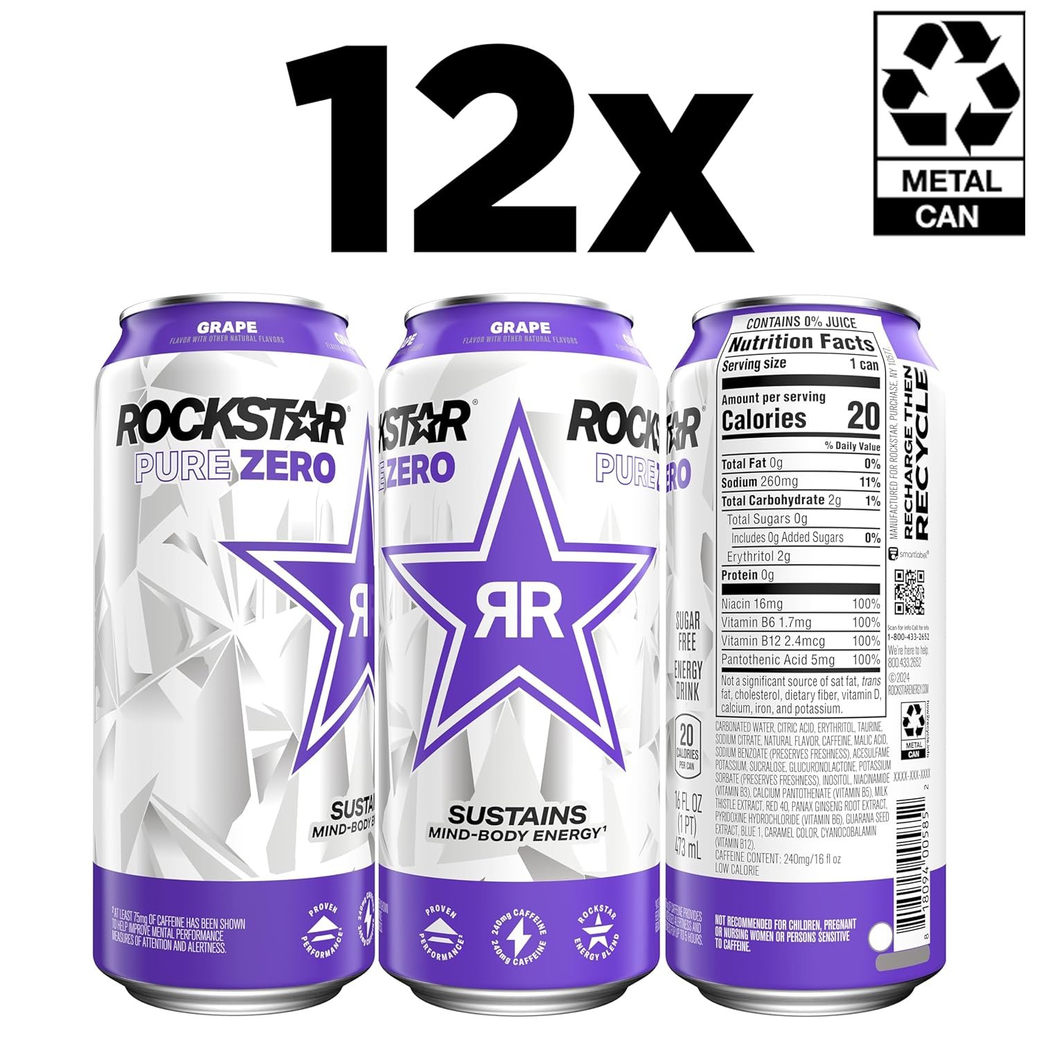 Includes 12 (16oz) cans of Rockstar Energy Drink, Pure Zero Grape