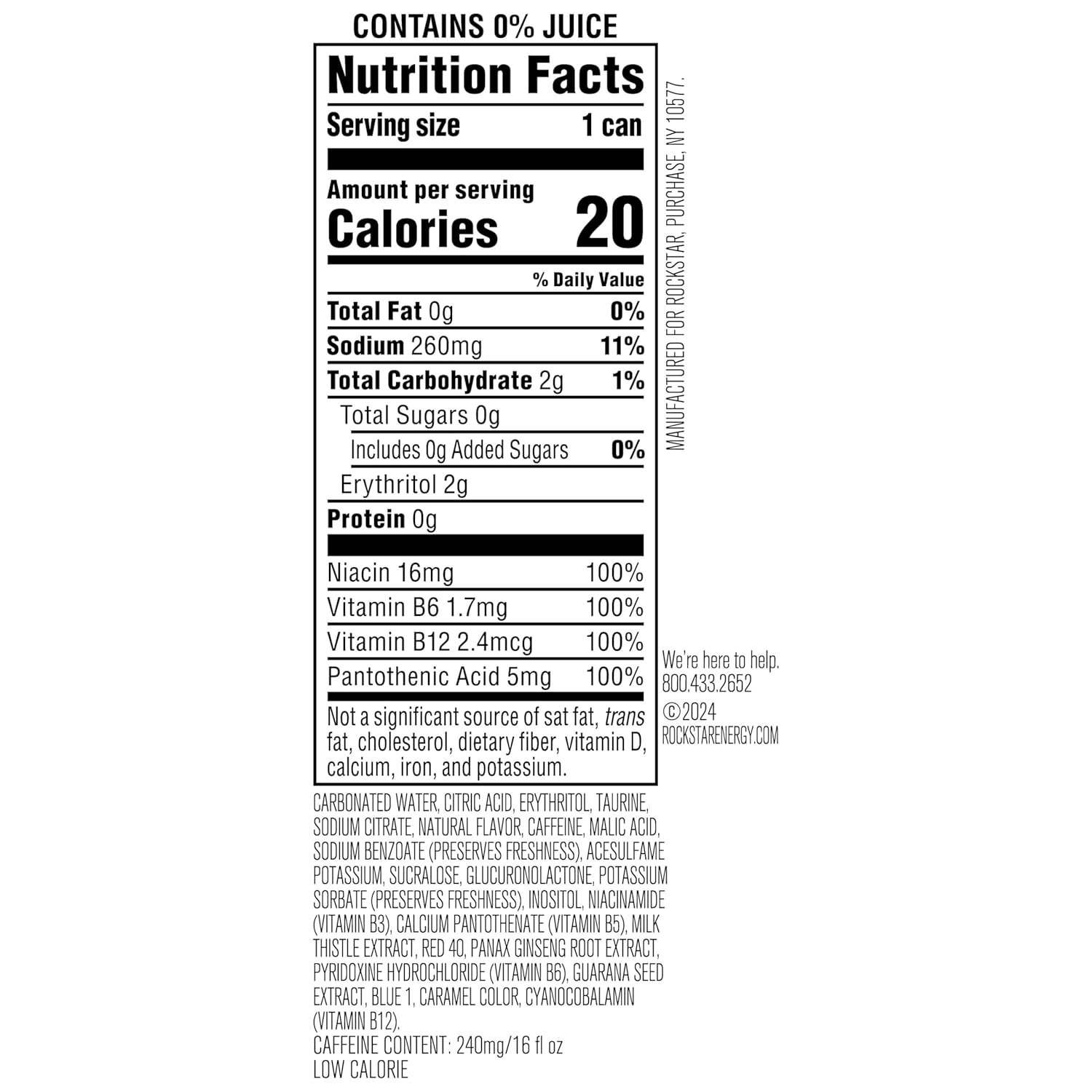 Power your hustle with Rockstar zero-sugar energy drink, fully-charged with B-vitamins and formulated with guarana, taurine, and caffeine to help keep you going and stay focused* with bold, distinct flavors. *>75mg caffeine has been shown to help improve attention. LOW CALORIE: 20 calories per can